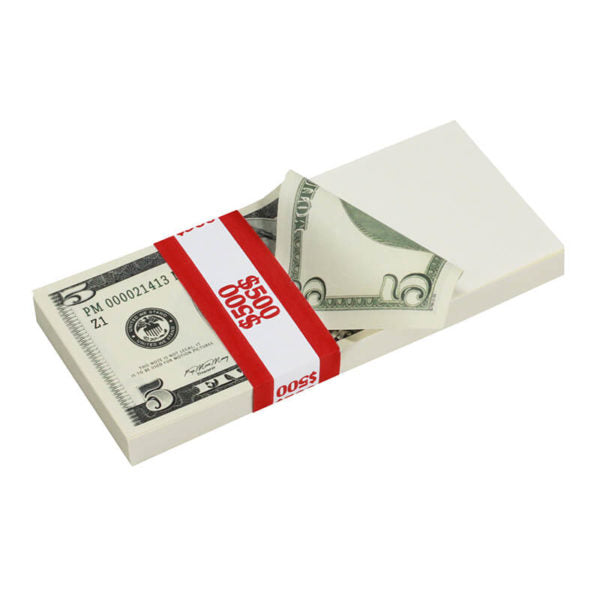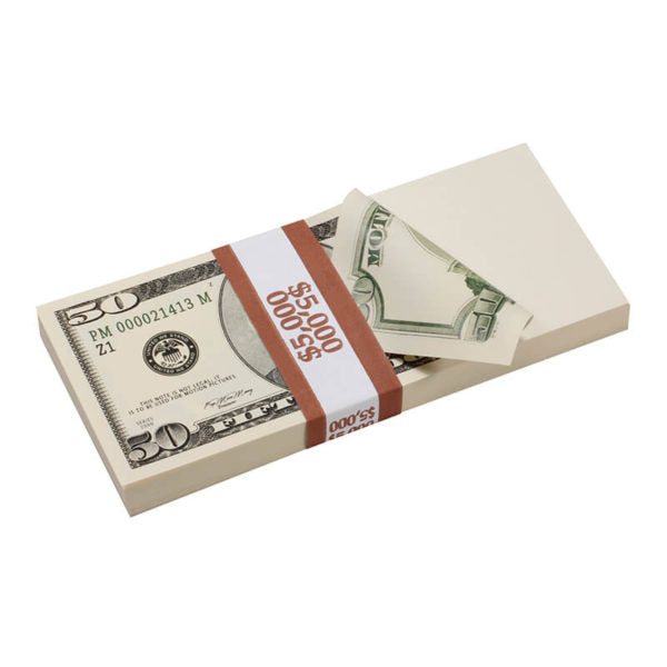 • Blank filler prop money stack consists of 1 full print on the top and bottom with BLANK PAPER in between the stack.